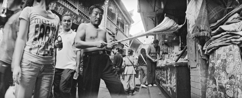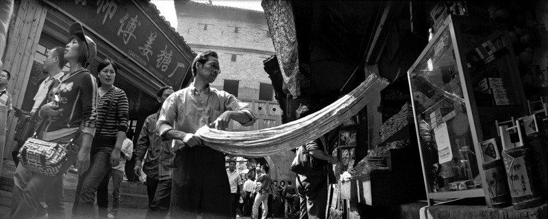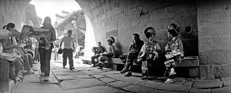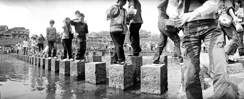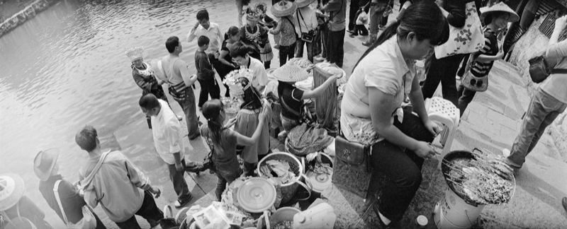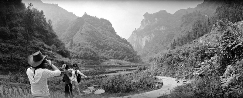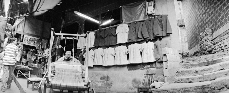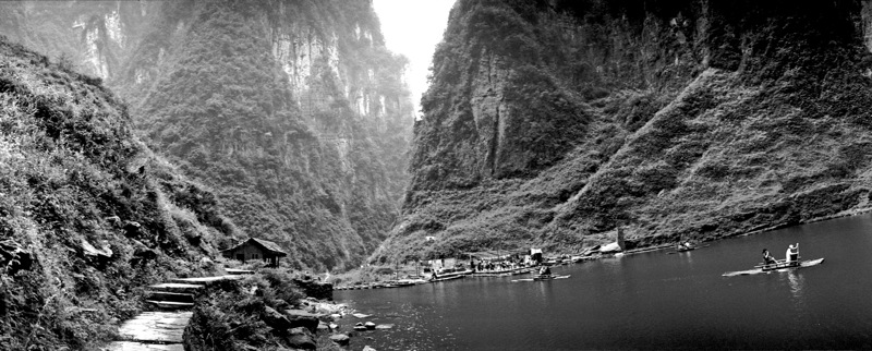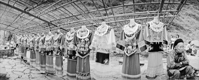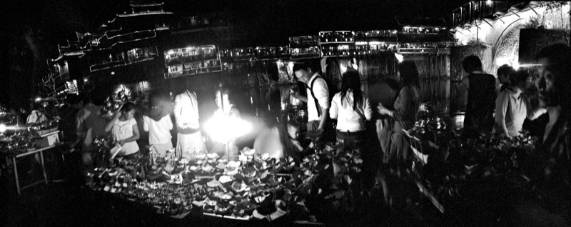 Boatmen wait for trade in the preserved river town of Fenghuang. Home of the minority Miao people.Street hawkers and traders.Fenghuang is famous for it's hand pulled ginger sweets.Miao women chatting in the old town.In most tourist towns it's a big business hiring out traditional Chinese costumes.Little kids pose in traditional Miao costumes.More hand pulled sweet action.Fenghuang tower by night.It's traditional for tourists to buy paper boats which are lit and floated down the river.Mao memoribilia for sale.Stepping stones across the Tuo River.Miao woman weaving cloth used to make shirts.Tourists posing against the backdrop of the Miao minority village Dehang.Path winds along the karst landscape of Dehang.Runaway goats.Miao costumes for hire.Underneath the Nine-dragon waterfallThe Tianwen platform high up in the mountains.Luisha waterfall. The water descends into a green pool.The green pool used as a boating pond.Karst landscape.High up in the mountains. You can just see the construction crane to the right where a motorway is being built.Scaffolding. Construction is everywhere.Log collection in a Miao village.