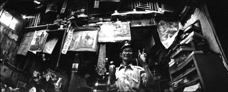The tallest seated buddah in the world.Arhat priest figures. Celestial beings that haven't reached enlightment yet.Boatman in Leshan city.Kangding. Townscape of this majority Tibetan town. Prayer flags line a trail to the monastery at the top of a hill.Dapper Tibetans enjoy yak butter tea. Salty.Tibetan prayer flags draped over the trees.Waiting outside the Kangding hotel.Tibetans arrive for the 'Walking around the mountain' festival. The giant Stupa are important marking points and frequently seen in Western Sichuan.A toy car ride at a kids fairground. It only goes up and down.At the panda nursery. Yes, the baby panda on the right is getting his/her bum wiped.One of the best gig venues in China. The Little Bar in Chengdu. The alternative music scene is still mainly punk influenced.Exquisite hand painted decorations of Kangding monastery.Old Chinese film posters at Chengdu's antiques market. And of course Mao.Probaby the biggest sculpture of a boy on an ox in China. A helper at this bizarre Mao museum.All things Mao occupy the front room of this Mao obsessive, seen sitting on the right. This curvy world. A view from a pagoda in Chengdu park. Despite so much high rise development, the Chinese do have a lot of public parks as most people still don't have much personal space at home.