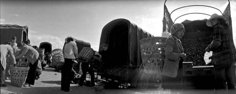Dali Sunday market. Baskets used like backpacks, old tyres transformed in big trays.The old bus station of Dali.Slow and noisy tractor style van.Through the back of a motorbike taxi.Hairdresser. Any style as long as it's on the wall.Local traffic. Horse and cart still popular.You can't escape the toy rides.Xizhou local market. Vegetable for sale, unknown.Ducks hanging out to dry after being marinated.Potato seller on a Dali side street.Naxi women perform a dance in the town square, Lijiang.A basketball court amidst the traditional rooftops in Lijiang.At the peak of the Jade Dragon Snow Mountain. Chinese tourists hire oxygen tanks and military overcoats for the ascend up the mountain (by cablecar).Traditional preserved soyabean shop. Like a Chinese version of cheese but with black bean and chilli flavours.Dai minority women at the weekly Xiding market, Xishuangbanna.Umbrellas used as decoration.At the wild elephant park, the elephants turn tricks. You're never quite sure whether the elephants are better off now or without human intervention.Dali brick maker. Used to store the heat of a fire in cooking. Horsemen at a performance.Rays of sunshine over fields in Dali.Market day in Xizhou. Signs of abandoned construction is common in China.Potato sellers in Shaping market.Fish sellerUpper floor of Lijiang bus station.Horse trekking park.